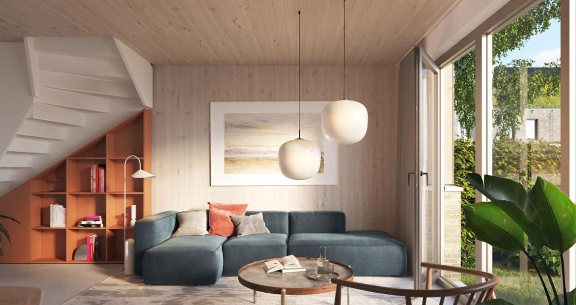 "From the start of the development of the homes, we carried out research with the consultants and the architect into the CO2 emissions of the design and the materials to be used. For instance, not only was the impact of using a wooden main bearing structure considered, but also the use of bio-based insulation, the application of a green roof, etc. Here, the impact on CO2 emissions is also always mirrored by the impact on construction costs. For the wooden houses in the Swanla Triangle, the choice was made to build the main load-bearing structure in CLT and the internal cavity walls in HSB. Bio-based insulation is partly used. The houses have a green roof. The houses are equipped with a heat pump system based on ground heat. There are PV panels on the roofs with the premise that the houses are energy-neutral."