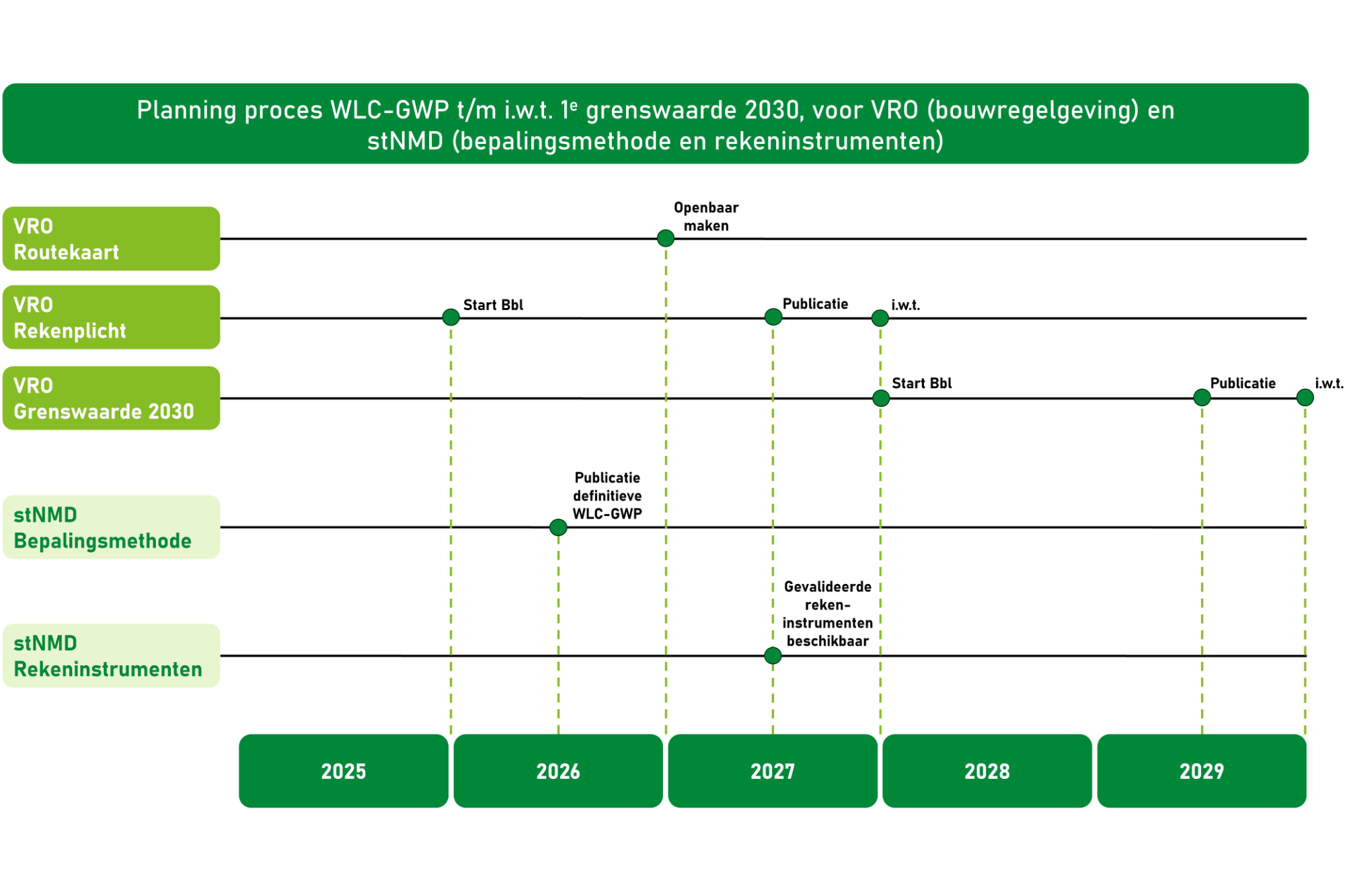 Vanaf 2028 zal er naar verwachting een wettelijke verplichting voor WLC-GWP -berekeningen komen bij nieuwbouw en grootschalige renovaties met een rapportageverplichting van embodied en operational carbon in CO₂-equivalenten (GWP).